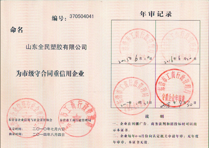 市级诚信企业荣誉市级2008.12